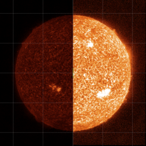 AIA imaging of the Sun before (left) and after (right) correction from a sounding rocket calibration. Image courtesy of NASA.